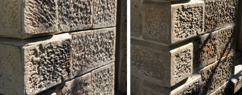Other factors affected by the physical properties of the sandstone include vulnerability to staining by natural weathering and atmospheric pollution. If they are also vulnerable to inappropriate cleaning techniques, changes to their appearance can be permanent.