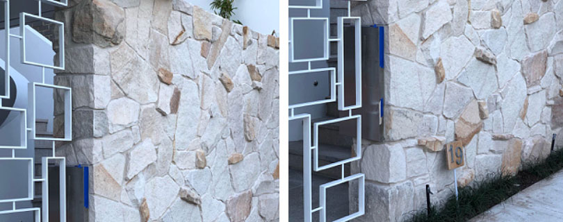 Rock faced sandstone is often used in cladding. It creates a formal finish and adds a level of texture to the design. Cladding or facing as it is sometimes called, is a simple way of decorating walls. Brookvale Stone specialises in natural stone wall cladding with many cost effective options depending on whether an architectural look or a natural stone wall look is required.