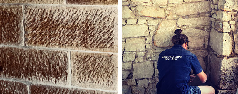 Pointing is the filling of horizontal or perpendicular joints to suit the existing stone and surroundings.